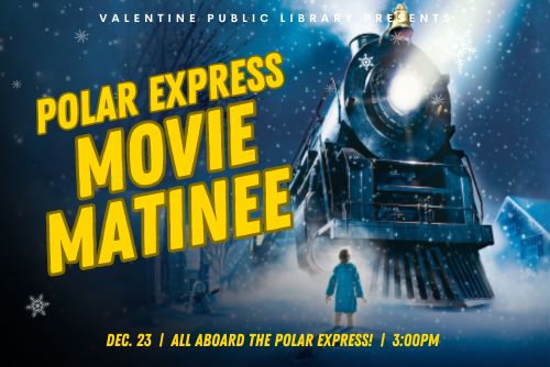 All aboard! Join us at the Valentine Public Library for a cozy showing of The Polar Express. We’ll be serving hot chocolate and popcorn, so come ready to sip, snack, and settle in for this holiday favorite. You are welcome to bring a warm throw ...more